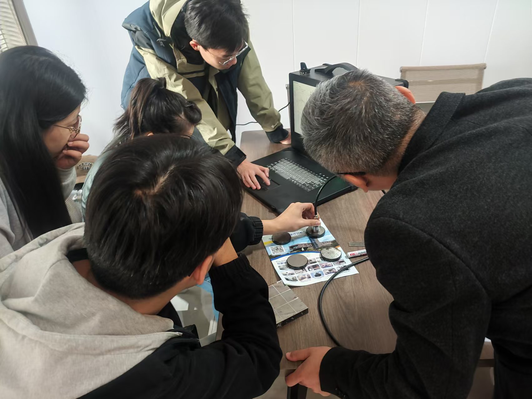 次日,即11月14日,徐州華順測控技術有限公司的會議室成為了這場技術探索的核心場所。徐州華順測控王工拿出超聲硬度計和超聲試塊,還直接組織了一場關于殘余應力檢測的深度研討會。會議室內,技術人員們圍繞鋼鐵樣品的檢測結果展開了激烈的討論與交流,現場氣氛緊張而熱烈。